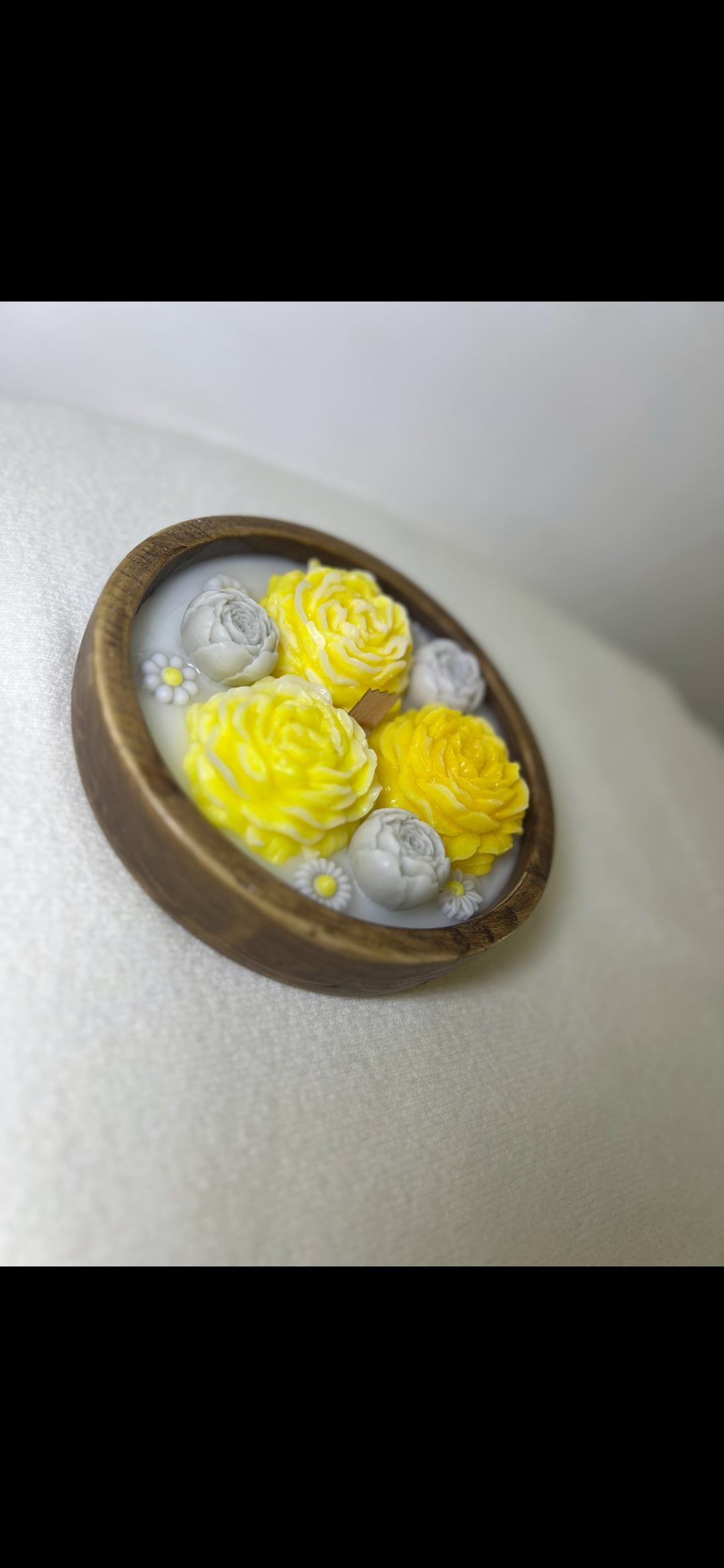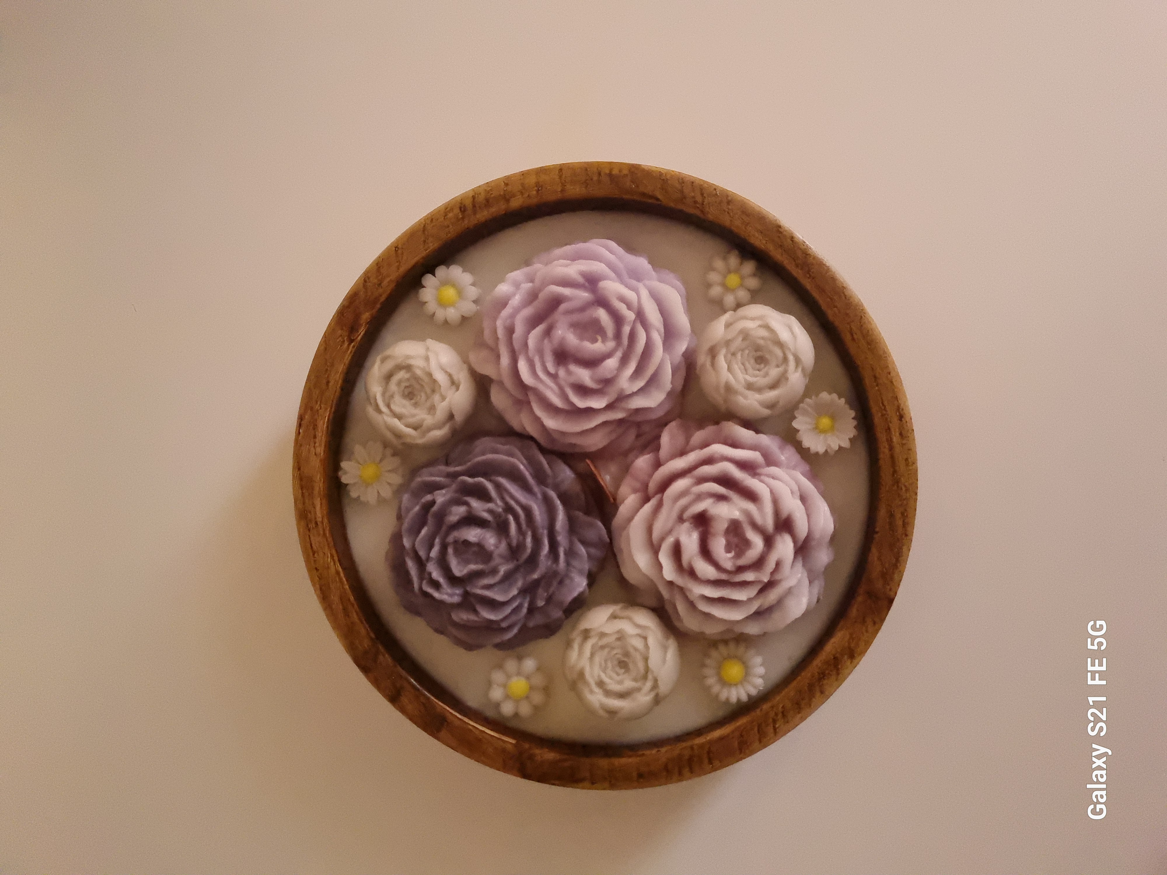 شمع شات آلاله، دارای شات بتنی و تزیین با کل آلاله و پیونی و شکوفه بهترین گزینه برای کادو، عیدی، دیزاین منزل
