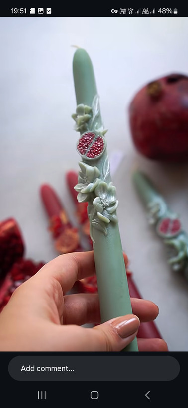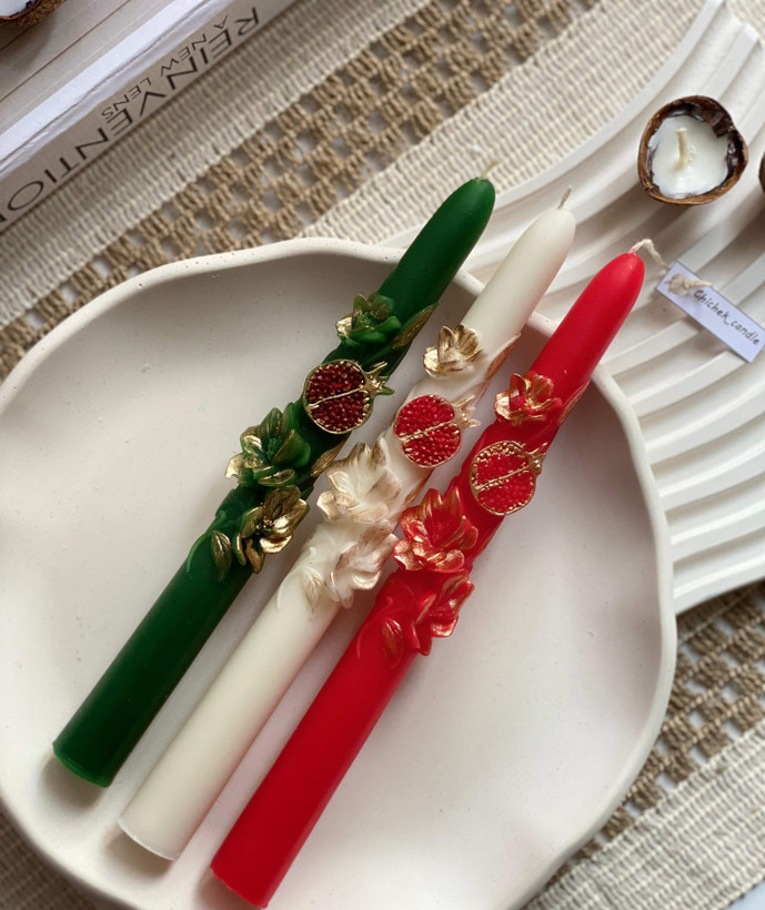 شمع قلمی با طرح انار یکی از شیک ترین و خاص ترین مدل های امسال برای میز یلداست که زیبایی میز رو چند برابر میکنه.